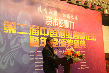 中國釀酒工業協會理事長王延才在頒獎盛典上作重要講話 3月23日,中國釀酒工業協會、《中國酒業》雜志社在成都城市名人酒店隆重召開“資本…