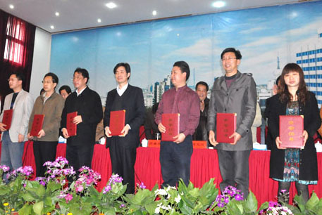 枝江酒業副總經理譚崇堯(左四)在全市黨務工作會議上接受頒獎 4月1日,枝江酒業黨委書記張華出席了在枝江國際大酒店隆重召開的全市黨…