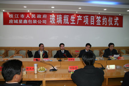 4月8日,枝江市市長劉建新與應城市星鑫包裝有限公司董事長胡志雄在枝江酒業行政大樓多功能廳簽下高檔精白料玻璃瓶項目投資協議。宜昌市委常委…