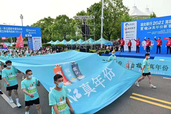 5月5日上午2021湖北長江超級半程馬拉松在鄂州市枝江市石首市嘉魚縣巴東縣5地同時(shí)鳴槍開跑 這是湖北省疫…