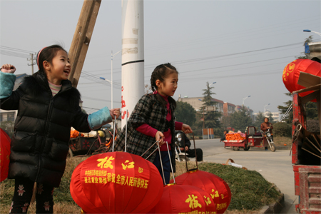 春節前夕,枝江城區的迎賓大道、團結路、沿江大道、民主路、公園路、江漢大道等城區主要道路兩旁全部掛上了主題為“誠信吉祥”的“有德吉祥燈”。紅紅的燈籠不僅裝點了城市的節日喜慶氣氛,更是一種崇尚道德的深情表達。由中共枝江市委宣傳部和枝江酒業集團聯合推出。圖為1月26日,枝江酒業員工和孩子們協助工作人員在江漢大道上掛燈籠的畫面。