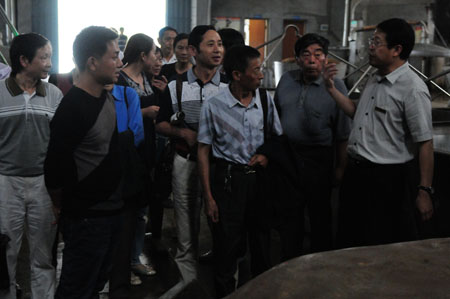 9月30日,在九九重陽節即將到來之際,枝江市問安小學中老年教師20余人在該校校長盛德剛的帶領下,來到枝江酒業,現場感受濃郁的釀酒文化,讓這些長期從事教育工作的老師們度過了難忘的別樣佳節。枝江市問安小學還有一個響亮的校名,叫枝江市雷鋒小學,不僅在德育教育上多次獲得省、市表彰,還在民間文化的傳承上不斷探索,取得了素質教育的新成績。這次來枝江酒業參觀和交流,校長盛德剛還特別邀請了他們的校外輔導員、榮獲全國爭先創優先進個人的“棉花奶奶”李文英,與中老年老師們共度重陽佳節。