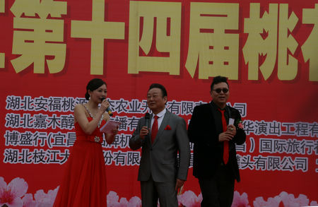 3月13日,枝江市第十四屆桃花藝術(shù)節(jié)在安福寺鎮(zhèn)隆重開幕。開幕式上,主辦方邀請(qǐng)了眾多演藝界的明星助陣,最引人注目的是著名男高音歌唱家蔣大為為大家?guī)淼摹对谀翘一ㄊ㈤_的地方》、《桃花依舊笑春風(fēng)》和他自己作詞作曲的《駿馬奔馳保邊疆》。主持人問蔣大為以前來過枝江沒有,是否熟悉枝江,蔣大為說:“第一次來枝江,只知道枝江大曲。”枝江酒是全國化品牌,在央視投放廣告十余年,品牌已經(jīng)深入人心。孫紅雷代言枝江酒時(shí)期,一句“我們都是有故事的人,知心、知己、枝江酒”不僅傳遍大江南北,還在北京演藝圈成為口頭禪。蔣大為和主持人的對(duì)話,贏得臺(tái)下熱烈的掌聲。一曲《在那桃花盛開的地方》幾乎“亂了”現(xiàn)場秩序,站起來拍照的、跟著蔣大為一起演唱的,整個(gè)現(xiàn)場的激情被蔣大為音清質(zhì)淳的歌聲點(diǎn)燃。參加開幕式的當(dāng)?shù)厝罕姡S多都是蔣大為的歌迷,此次能近距離地聽蔣大為唱歌,他們表示真像過節(jié)一樣高興。