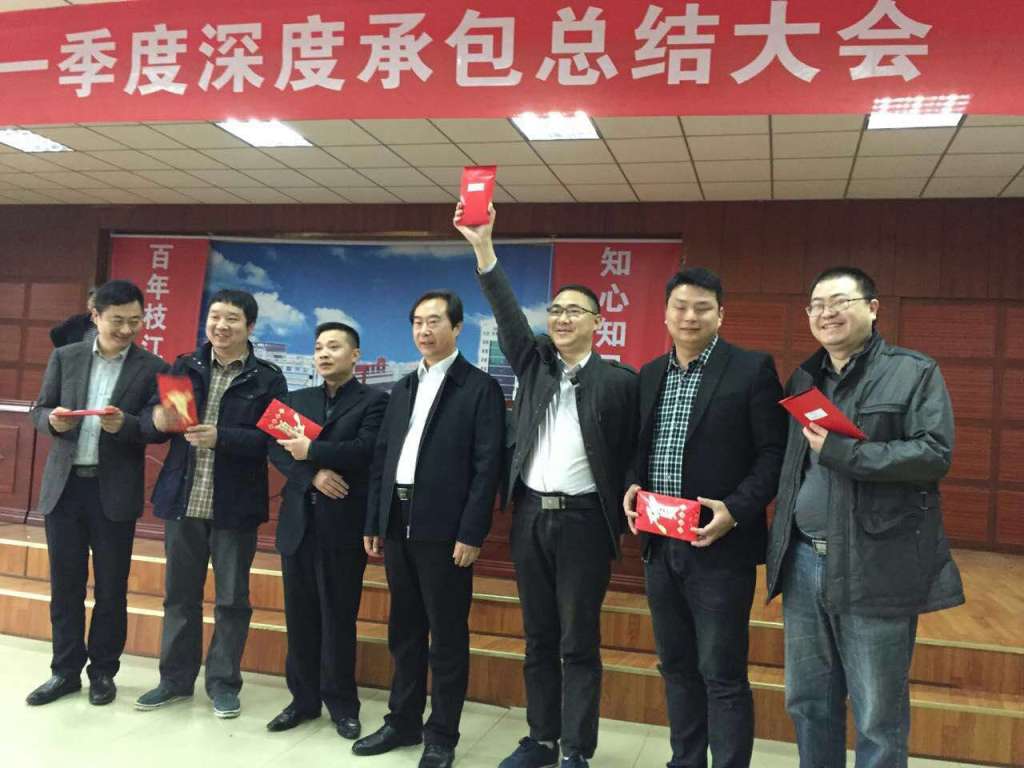3月29日,枝江酒業銷售公司召開2015一季度深度承包總結大會,對一季度銷售排名前十名的朱小紅、向陽、肖文敏、馬玉柏、張飛、李雄、胡錦峰、周發武、李文華、龍俊華、王鬧等業務員給予了獎勵,同時對曹海林、劉碧、蘇發明、張勁松、陳海峰、李遠等區域經理分別給予了1萬元獎勵。枝江酒業總經理陳洪衛在會上總結一季度銷售完成情況,代表公司高管對銷售人員的辛勤付出表示感謝。會上對省內的陽新、松滋、漢川以及省外的鄧州等部分市場給予充分肯定。