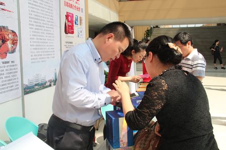 侯先圣副總經理在產品展示處與前來咨詢的客戶交流
