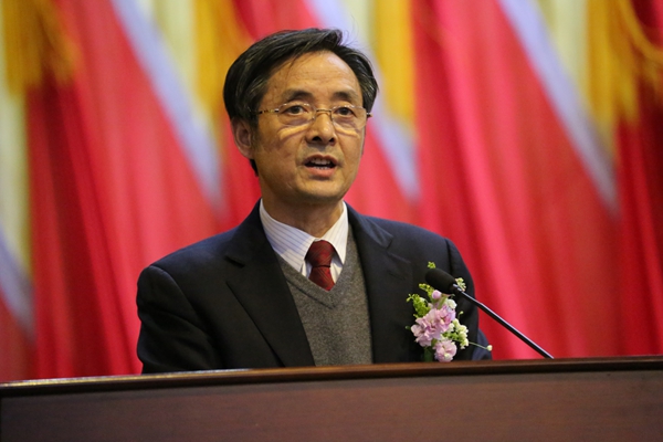 中國釀酒大師、枝江酒業副總經理譚崇堯宣讀表彰決定