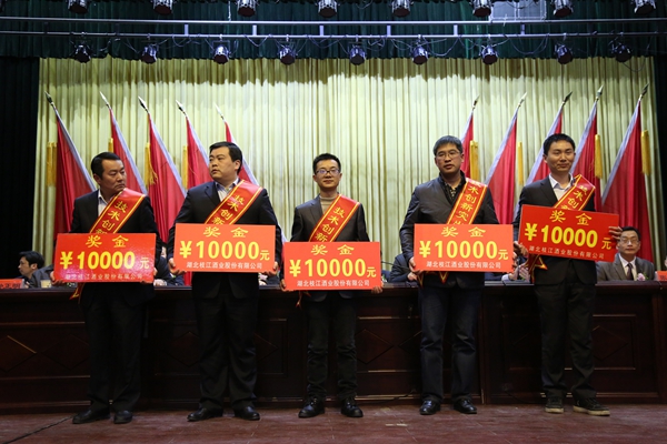 會議由黨委書記張華主持。會議首先通報了2015年度公司及公司領導受表彰情況,通報了關于表彰2015年度紅旗單位及優秀員工的決定。常務副總經理譚崇堯通報了關于表彰技術創新突出貢獻人員的決定。與會領導為受表彰的人員進行了頒獎。鷹潭分公司經理葉玉華、酒體設計部朱小林、釀五14班長陳世彬分別代表銷售、技術、生產三大中心的獲獎人員在大會上發言。