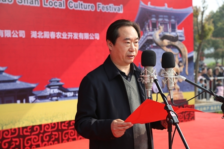 枝江酒業(yè)總裁曹榮開(kāi)代表枝江酒業(yè)全體干部職工對(duì)關(guān)廟山鄉(xiāng)土文化節(jié)的隆重開(kāi)幕表示熱烈的祝賀!他說(shuō):“問(wèn)安是一個(gè)美麗的地方,既是楚文化的發(fā)源地之一,又是湖北省新農(nóng)村建設(shè)試點(diǎn)鎮(zhèn)。特別是問(wèn)安境內(nèi)的關(guān)廟山遺址,其文化內(nèi)涵極為豐富,不僅屬大溪文化,還疊壓有屈家?guī)X文化層和石家河文化層,是長(zhǎng)江流域著名的原始村落遺址,它又一次有力地證實(shí)了長(zhǎng)江流域和黃河流域一樣,同為中華民族的搖籃。問(wèn)安的關(guān)廟山,把悠悠古鎮(zhèn)的綿長(zhǎng)歲月壘筑成神秘的時(shí)光邃道,讓有心的后人來(lái)穿越。今天,在這里舉辦中國(guó)?問(wèn)安第六屆關(guān)廟山鄉(xiāng)土文化節(jié),就是很好地嫁接和運(yùn)用了歷史文化元素,這些元素是歷史留給問(wèn)安的寶貴遺產(chǎn)和惠澤后人的精神財(cái)富。今天的問(wèn)安,是詩(shī)與畫(huà)的問(wèn)安,也是歷史的夢(mèng)想已經(jīng)變成現(xiàn)實(shí)的問(wèn)安。問(wèn)安人民以打造全省一流的新農(nóng)村建設(shè)示范區(qū)、宜昌最大的綠色生態(tài)精品農(nóng)業(yè)先行區(qū)、枝江新興農(nóng)產(chǎn)品加工工業(yè)大鎮(zhèn)和文化田園鄉(xiāng)村旅游新鎮(zhèn)為目標(biāo),克難奮進(jìn),爭(zhēng)當(dāng)?shù)谝唬瑩屪ト嫔罨母锖徒?jīng)濟(jì)轉(zhuǎn)型發(fā)展的大好機(jī)遇,首次被列入全國(guó)重點(diǎn)鎮(zhèn)行列,連續(xù)被評(píng)為省級(jí)文明鄉(xiāng)鎮(zhèn)、省級(jí)衛(wèi)生鄉(xiāng)鎮(zhèn)、宜昌市最美鄉(xiāng)鎮(zhèn)、宜昌市特色產(chǎn)業(yè)明星鄉(xiāng)鎮(zhèn)等稱號(hào)。這種勤勞為本的拼博精神與我們‘柔雅枝江王’做生活的王者所訴求的文化內(nèi)涵相契合,我們借此機(jī)會(huì),祝福問(wèn)安人民生活越來(lái)越好”!