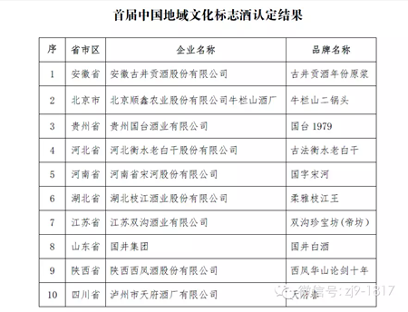 枝江酒業黨委書記張華出席了授牌儀式。據了解,中國酒業協會文化委員會在行業中開展的“中國地域文化標志酒”認定活動,是為了推動中國酒文化的傳承,提升重點地域品牌的知名度,支持地域龍頭企業發展,并于2015年12月29日組織十省市酒業協會在成都召開了“中國地域文化標志酒研討會”,正式啟動了認定工作。首屆“中國地域文化標志酒”認定工作,選取十個省市作為試點。為保證認定工作的公開、公平、公正,按照《中國地域文化標志酒管理辦法》的要求,首屆“中國地域文化標志酒認定”分為大眾網絡投票和評審委員會評審兩個環節,最終每個省產生一個品牌。2016年3月7日,經過網絡投票和中國酒協評審委員會評審,中國酒協于2016年3月7日-14日發函公示了十家入選企業名單。