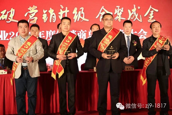 會上授予陽新縣興國鎮宏財副食批發部劉志剛等4名經銷商“突出貢獻獎”;授予邯鄲市萬全糖酒有限公司劉海永等4名經銷商“精誠合作獎”;授予桐柏金達貿易有限公司馬曙光等4名經銷商“高速成長獎”;授予溧陽市溧城久更久酒業商行洪志全等4名經銷商“營銷轉型獎”;授予徐州市盛元瑞隆商貿有限公司周飛等4名經銷商“新品推廣獎”。優秀經銷商代表周飛和鄒根軍分別在會上發言。