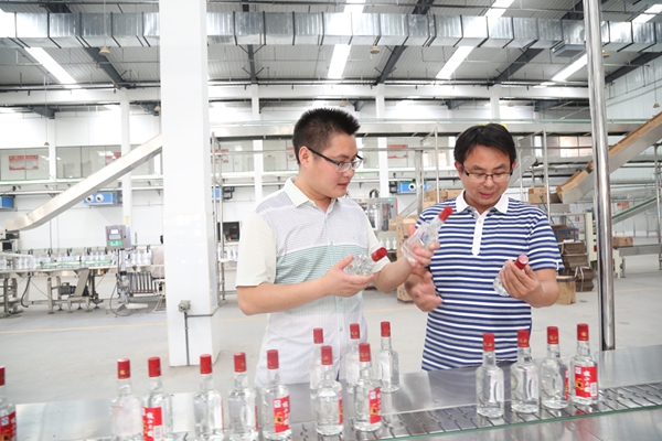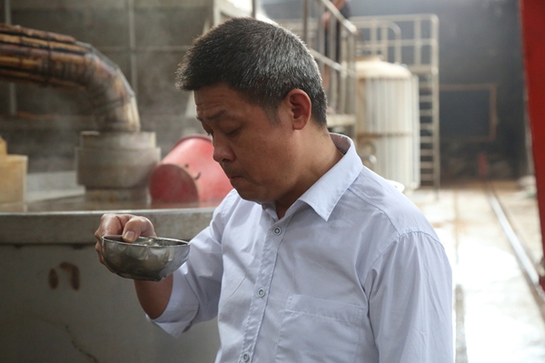 釀造調度、高級釀造師盧祖濤(左一),2013年入黨?!拔艺J為做一個合格黨員,首先要坦蕩做人,踏實做事。”