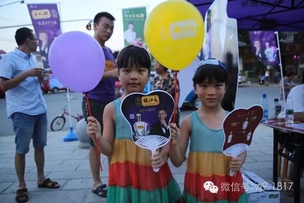 小朋友們隨父母出來納涼,得到枝江酒業(yè)的小禮物,好開心