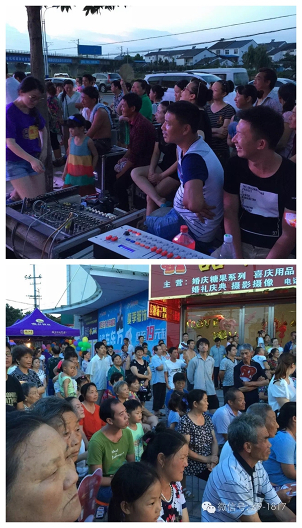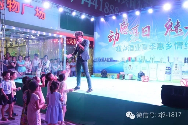 7月23日,枝江酒業(yè)在安福寺鎮(zhèn)舉辦“動感夏日 魅力枝江”鄉(xiāng)村行文藝演出,為當?shù)厝罕妿碡S富的文化套餐。這是枝江酒業(yè)在這個夏天“送戲下鄉(xiāng)”的第一站。枝江酒業(yè)總裁曹榮開、銷售公司總經(jīng)理侯先圣到文藝演出現(xiàn)場,與代理商趙勇、王春華、王國慶一起就新品推廣做調(diào)研。
