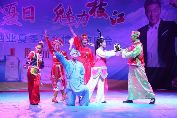 7月28日,枝江酒業“動感夏日 魅力枝江”鄉村行之情滿問安文藝匯演在問安金泉廣場舉行。精彩的文藝節目,有趣的互動游戲,吸引了前來納涼的問安群眾。“枝江酒作為與枝江這個地名同名的本地品牌,不斷發展壯大期間,始終立足于枝江,與家鄉人民同輝煌共患難,同時更是得到了政府和家鄉人民的大力支持。濃濃家鄉情 回報桑梓心,今天,為了回饋家鄉父老,枝江酒業人不僅為大家帶來了好看的文藝節目,同時也為大家帶來了各種福利,希望在這個炎炎夏日為您帶來一絲清涼” 隨著主持人的開場白,納涼晚會正式拉開序幕。